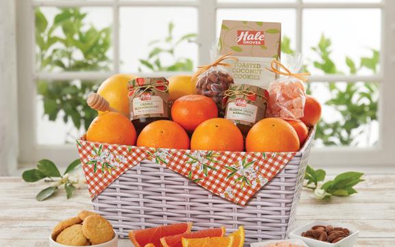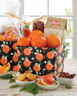 Get ready to celebrate spring! Our most popular premium citrus is joined by Toasted Coconut Cookies, Honeybell Candies, Honey Roasted Almonds and our signature Hale Orange Marmalade and Orange Blossom Honey with wooden dipper in a reusable tray for a gift that will be all the buzz.