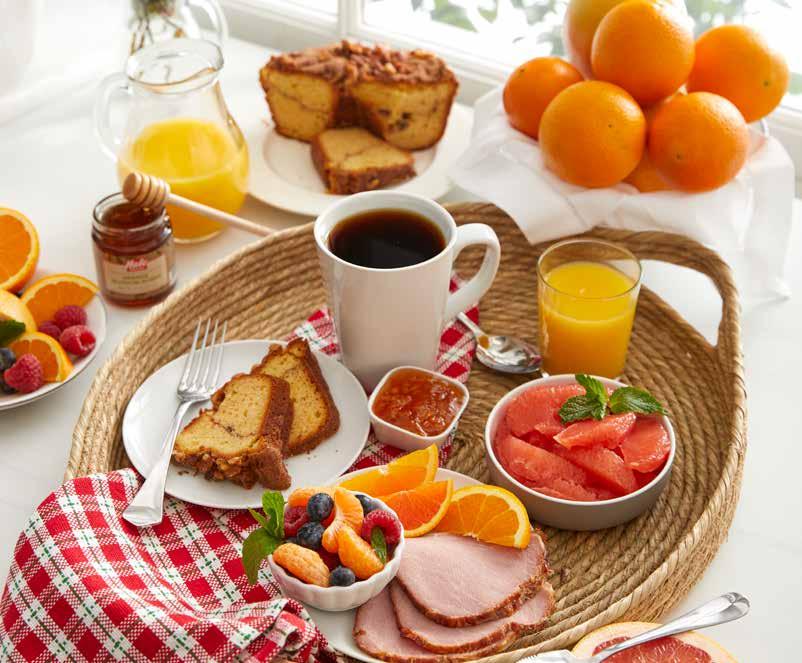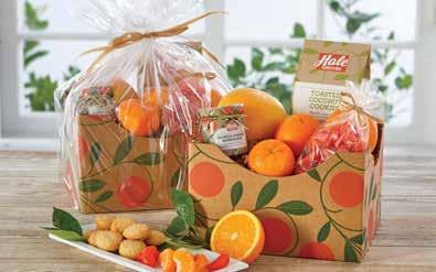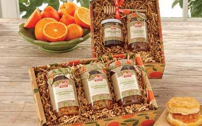 Morning Makers FOR BREAKFAST OR BRUNCH A. Deluxe Breakfast Box Give something worth waking up to. What’s for breakfast? How about Coffee Cake, sweet Ruby Red Grapefruit, seedless Grove Navel Oranges and Marmalade? Choose our popular Breakfast Box or the Deluxe with Canadian Bacon, Orange Blossom Honey, a honey dipper and four grapefruit spoons. 444 (approx. 15 lbs.) ........................ $79.99 Good Morning Breakfast Box 439 (view online, approx. 11 lbs.) ............... $59.99 Available mid-November-April CUSTOMER FAVORITE A A 30 1-800-BUY-HALE (1-800-289-4253) HALEGROVES.COM