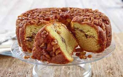 Two reasons why this cake is a customer favorite; a traditional recipe and great ingredients. Sweetly spiced cake double layered with buttery walnuts and cinnamon.