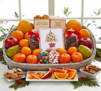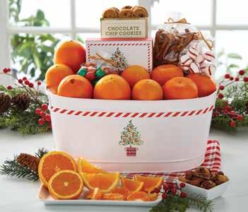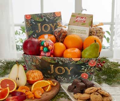 If the joy of the holidays came in a box, this would be it: Nestled in with fresh-picked, sweet, and oh-so-juicy citrus and orchard fruits of the very best quality are luscious gourmet treats from our bakery and candy kitchen. Perfect for entertaining in an easy-serve, festive holiday box.