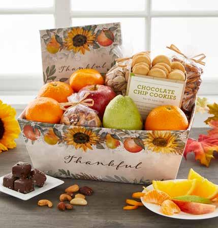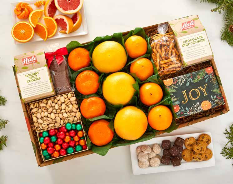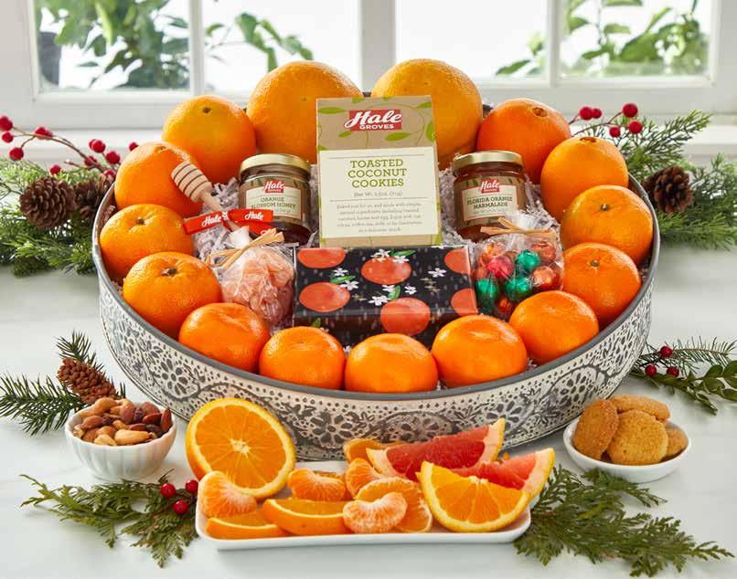 View entire Thankful Collection at HaleGroves.com/Thankful NEW! Unwrap the gift of sunshine Thankful Gift Tray NEW! Show loved ones & associates how much you care. Our exclusive Thankful Collection is a great way to show you care! Inside our fall-themed tray is an assortment of the season’s bounty: fresh, premium fruit paired with gourmet sweets and treats that perfectly express your warm thoughts. 2004 (approx. 6 lbs.) .................$54.99 Available November–December Product purchase is exclusive of taxes and shipping & handling charges. Enter Promo Code H4BC during checkout when you purchase online at HaleGroves.com or call 1-800-289-4253. Discount valid through 10-31-23. Valid for orders by mail, phone, fax or online. Not valid on previous purchases. Not valid with any other offer or discount. Not valid for purchase of Gift Cards. No cash value. Availability, prices and shipping charges are subject to change without notice. Void where prohibited. For more details, call 1-800-289-4253. ©2023 Hale Groves. Hale Groves 1650 90th Ave. Vero Beach, FL 32966 Please deliver to current resident or: Shop 24/7 at HaleGroves.com Call us at 1 - 800 -BUY-HALE Sign up for exclusive offers and to receive a FREE recipe e-book. Go to HaleGroves.com/Email