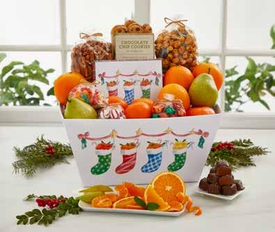 Thrill your friends, family and associates with Chocolate Chip Cookies, Holiday Milk Chocolates, Deluxe Mixed Nuts and Chocolate Crunch Popcorn, along with your choice of fruit, rushed straight from the trees and ready to enjoy. Original gift assortments and exclusive treats, only from us.