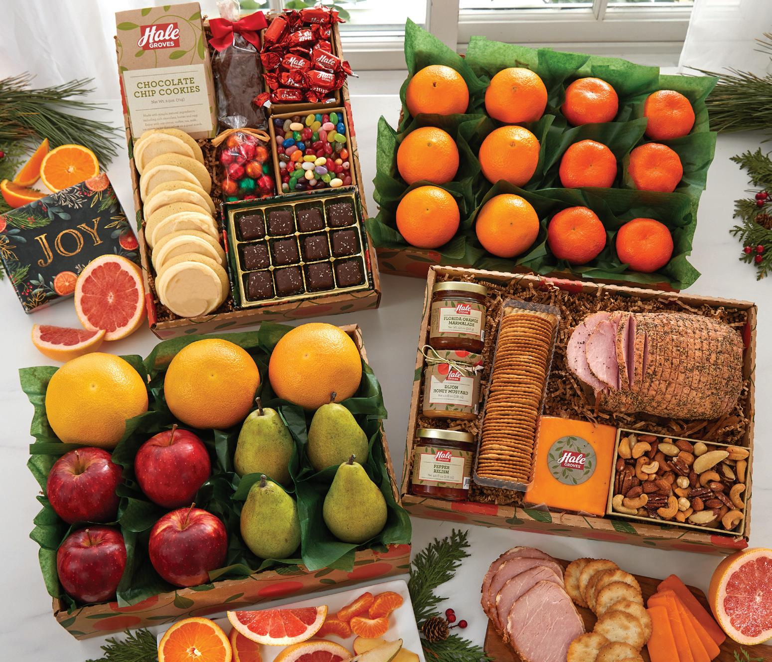 Thrill your friends, family and associates with Chocolate Chip Cookies, Holiday Milk Chocolates, Deluxe Mixed Nuts and Chocolate Crunch Popcorn, along with your choice of fruit, rushed straight from the trees and ready to enjoy. Original gift assortments and exclusive treats, only from us.