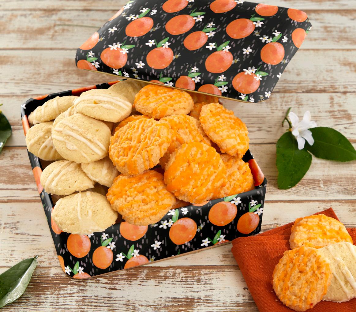 We’ve paired a customer favorite with a great flavor. Our popular sweet yet tangy Orange Cookies are enhanced with a touch of coconut and a drizzle of orange icing. Our Lemon Cookies have added lemon zest to brighten their flavor and a drizzle of icing. Choose Orange, Lemon, or the Combination, all packed in our Orange Delight Gift Tin.