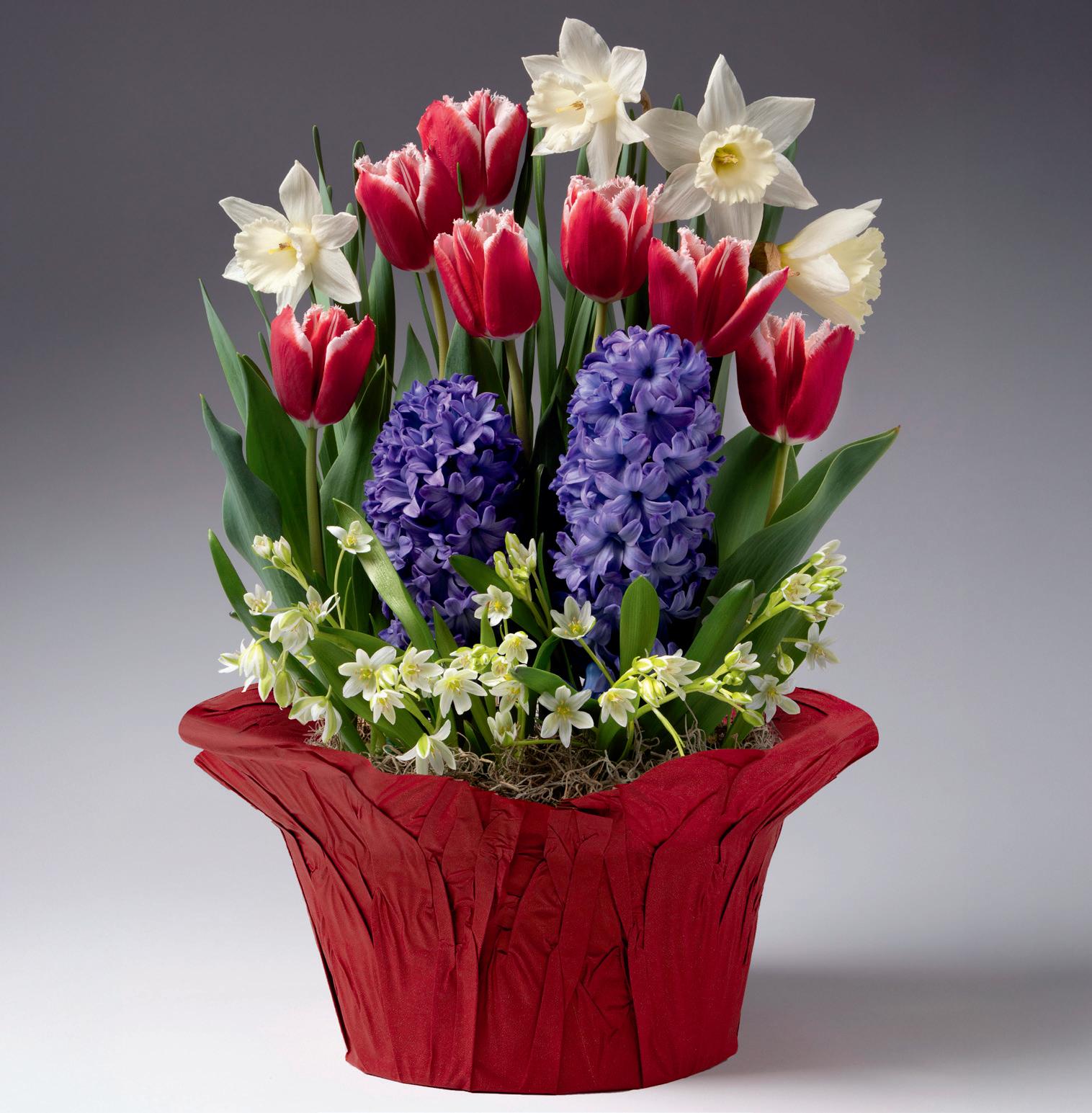 Pre-planted bulbs make a wonderful gift or holiday accent…add water and watch scarlet tulips, pale daffodils and fragrant, snowy hyacinths emerge as bright and beautiful as a fresh winter morning.