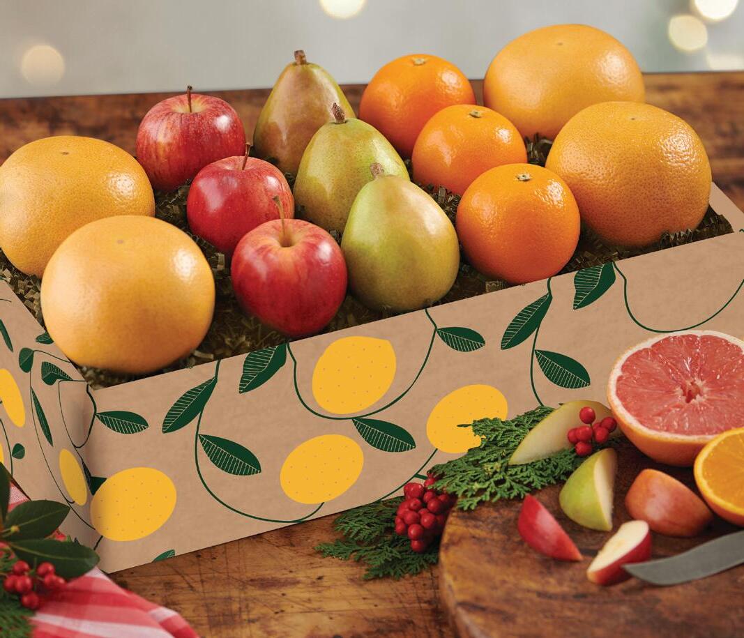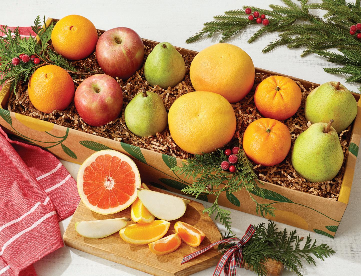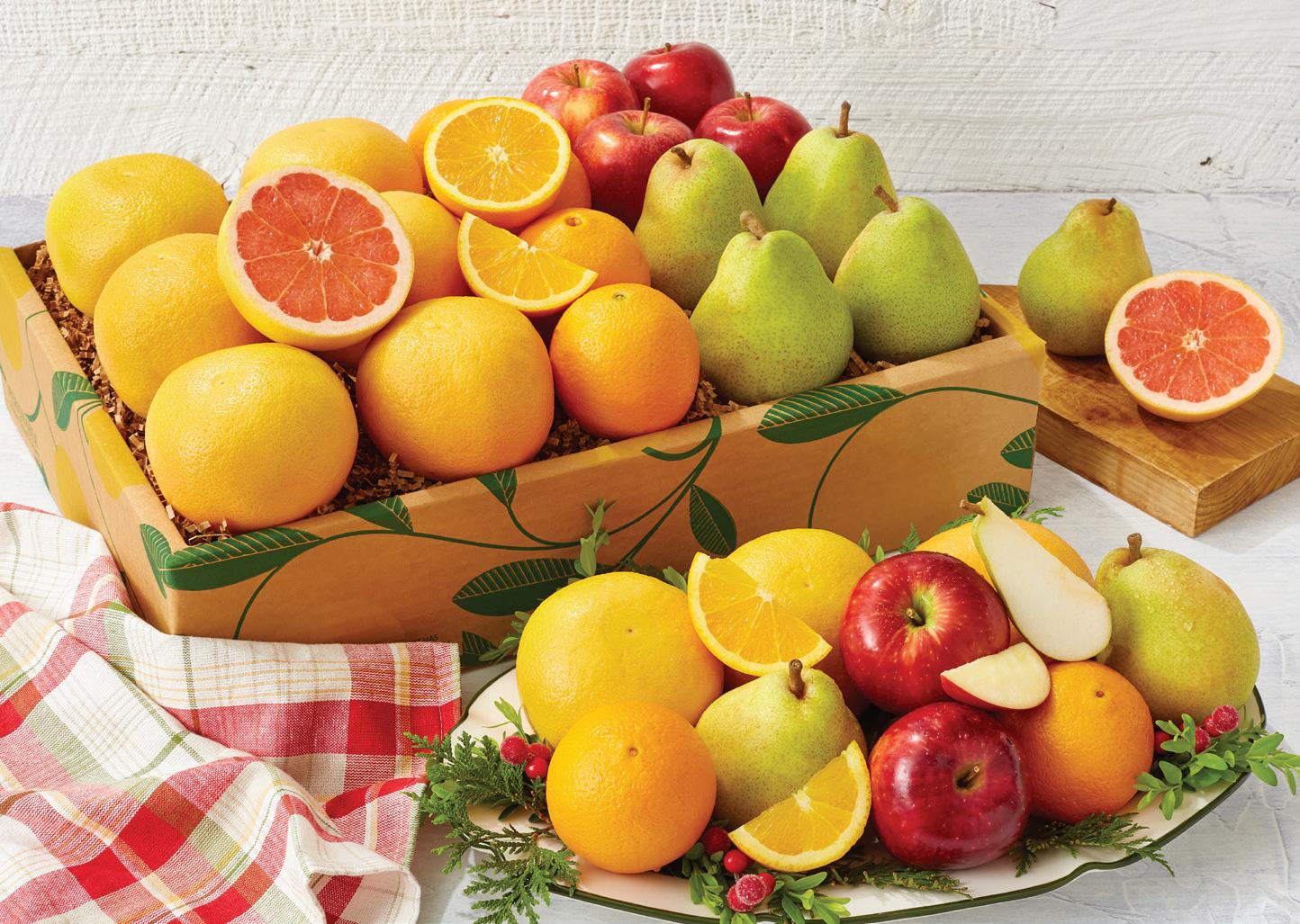 Soil, sunshine and generations of care delivered as nature’s sweetness. These citrus and orchard fruits are a celebration of color and a taste sensation. Includes Rio Ruby™ Red Grapefruit, King Comice Pears, crisp Mountain Apples, and Navel Oranges. (Available November through January.)