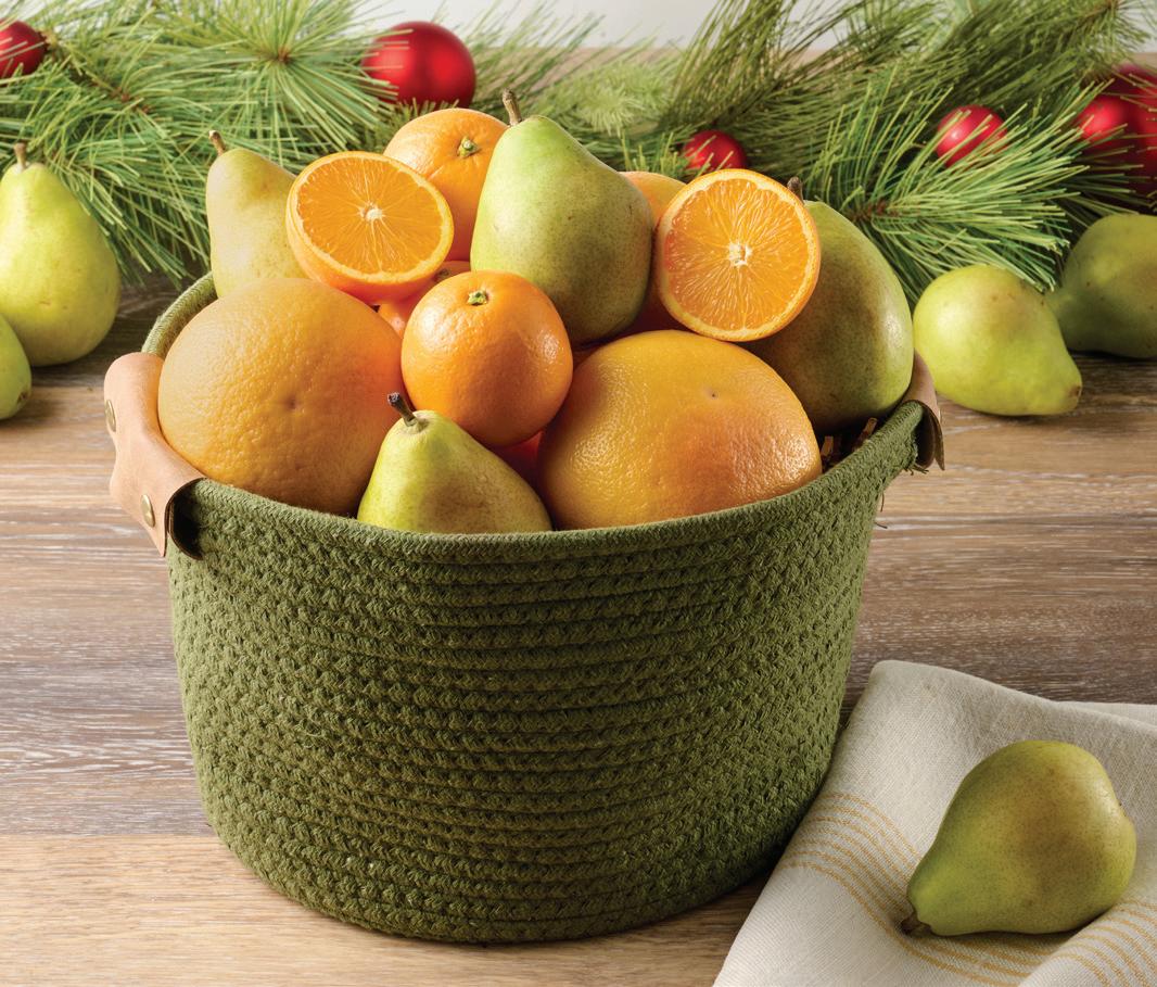 Packed with our most popular, orchard-fresh fruit, this woven rope basket looks lovely under your or a loved one’s tree! All your in-season favorites are here: plump, sweet Rio Ruby™ Red Grapefruit, juicy, seedless Navel Oranges and velvet-textured King Comice Pears. The keepsake basket serves as a stylish storage container long after the fruit is gone. (Available mid-November through January.)