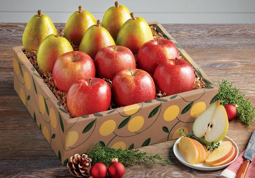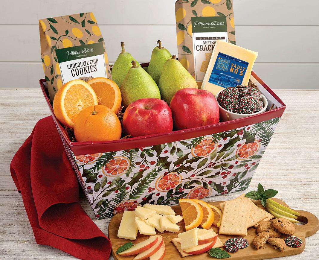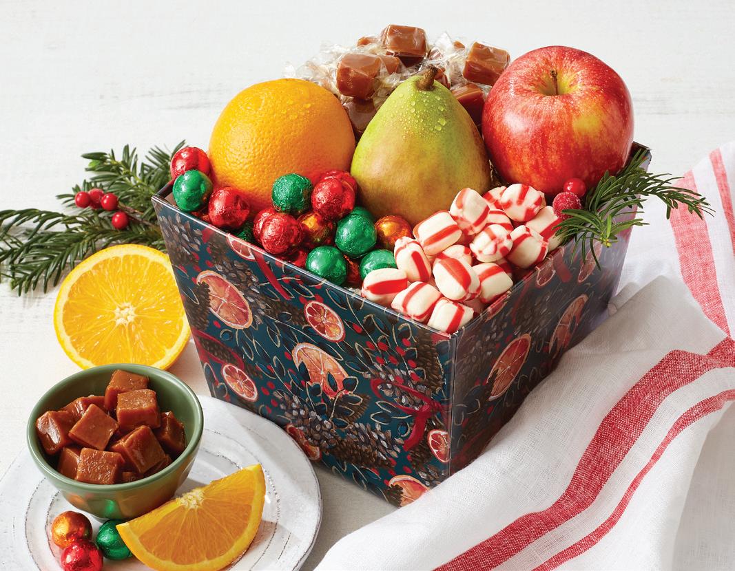 A thoughtful gift for the hostess or anyone, our exclusively designed box is packed full of goodies: one each of our most popular farm-fresh fruits plus an assortment of sweet holiday favorites.