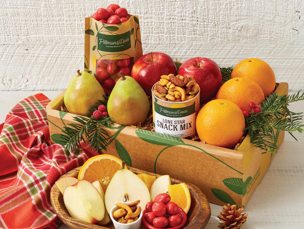 When Howard Pittman shared a grapefruit with Frank Davis, that wondrous grapefruit inspired the care and gifting of nature’s best fruits and snacks. Joining Rio Ruby™ Red Grapefruit as a Founder’s Favorite are King Comice Pears, Mountain Apples, and Navel Oranges. Our exclusive American Grown Snack Mix and Caramel Pecan Popcorn are presented next to Chocolate Covered Almonds and Premium Pistachios. Exceptional fruit paired with premium snacks for a festival of flavors. (Available November through January.)