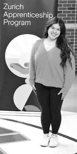 Solis Escamirosa joins an esteemed group of Zurich apprentices, who work in a range of businesses and functions. Zurich offers pathways to earn an associate degree or a bachelor’s degree, all while starting a career simultaneously. According to www.zurichna.com/ careers/early-careers, “Zurich offers an award-winning apprenticeship program in Schaumburg and New York City. In addition to general insurance, apprenticeships are sometimes available in IT, cyber, HR and other focus areas. As a participant, you receive on-the-job training at Zurich while working toward your Associate in Applied Science degree through a neighboring college. Successful graduates are promoted into a full-time job at Zurich.”