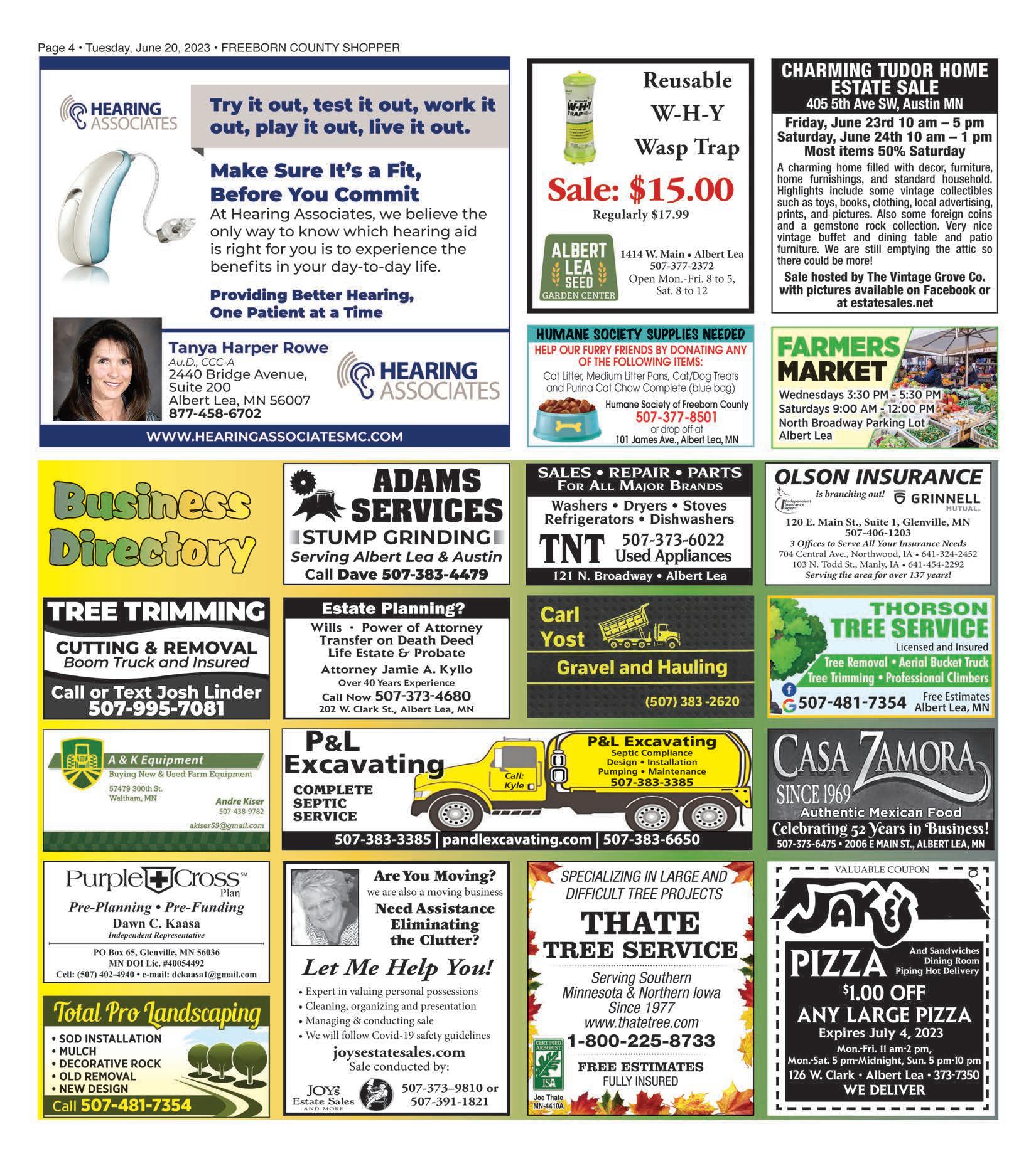 Reach the Freeborn County market for less using the Freeborn County Shopper classifieds. Need a quick quote? Submit your ad online at freeborncountyshopper.com. Call 507.369.2742.