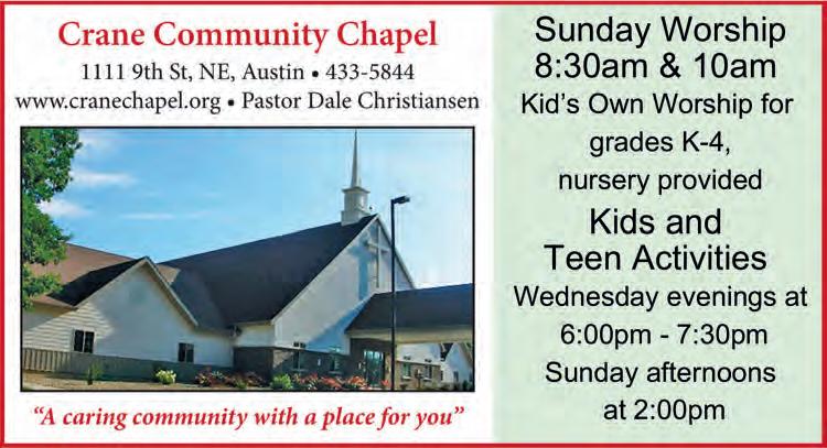 Sunday Worship 10 a.m. austinlivingbible.com/ Marshall Lutheran Church 16600 68oth Ave, Adams 507-582-7720