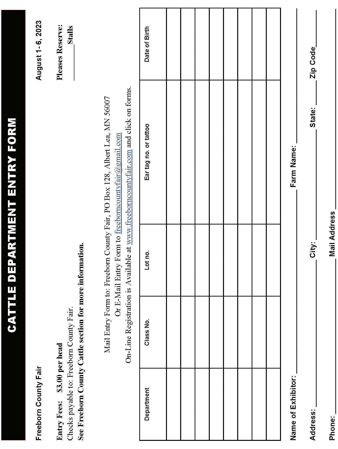 Or E-Mail Entry Form to: freeborncountyfair@gmail.com