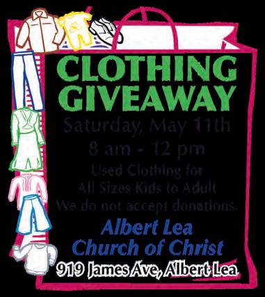 Rummage Sale 107 2nd St. SW Clarks Grove, Friday & Saturday 8am-4pm