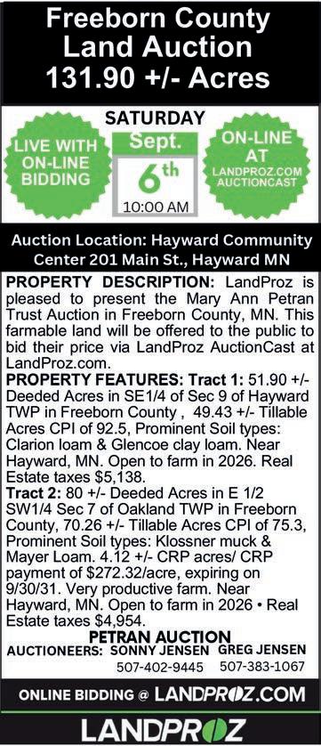 Offered by the Ted & Shirley Hinrichs Revocable Living Trust Contact now for more information or to schedule a tour! Office 507-584-0133 • Andrew’s Cell 507-438-6693
