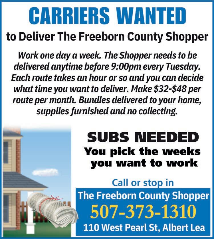 following Tuesday’s publication of the Freeborn County Shopper.