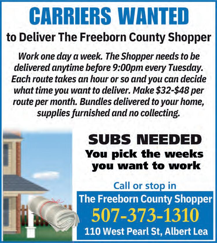 Interested applicants must apply through the online application process available on the Freeborn County website http://www.co.freeborn.mn.us Completed applications along with cover letter and resume are due by 12:00 pm, Friday, October 17th, 2025