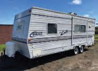 Many garage tools, weedwaker, septic pump, coca-cola cooler, chairs, hedge trimmers, lanterns, bike racks, saws, fence & poles, tire chains, xmas trees, fifth wheel hitch, golf clubs, bikes, pizza oven, air compressor, drop leaf table, 20 ft ladder, much more misc
