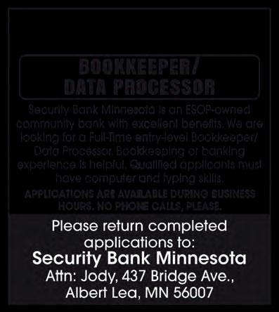 Spacious 1 bedroom 15 minutes south of Albert Lea. $405/mo, utilities included except electric. Background checks required. No smoking! No animals! Call or text 507-456-9514.