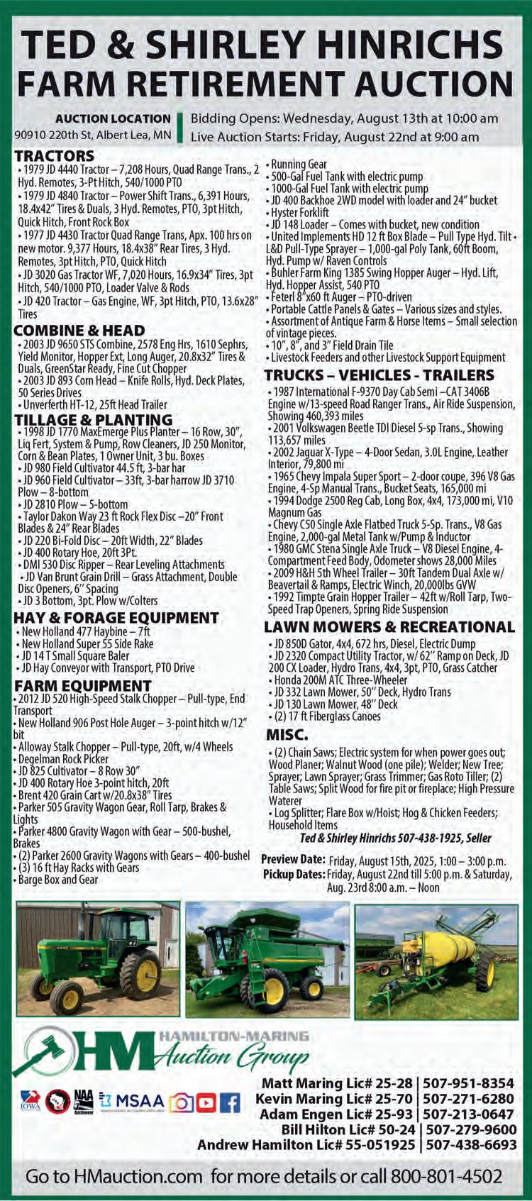 Saturday, August 23rd 9am-6pm 18912 620th Ave, Rose Creek