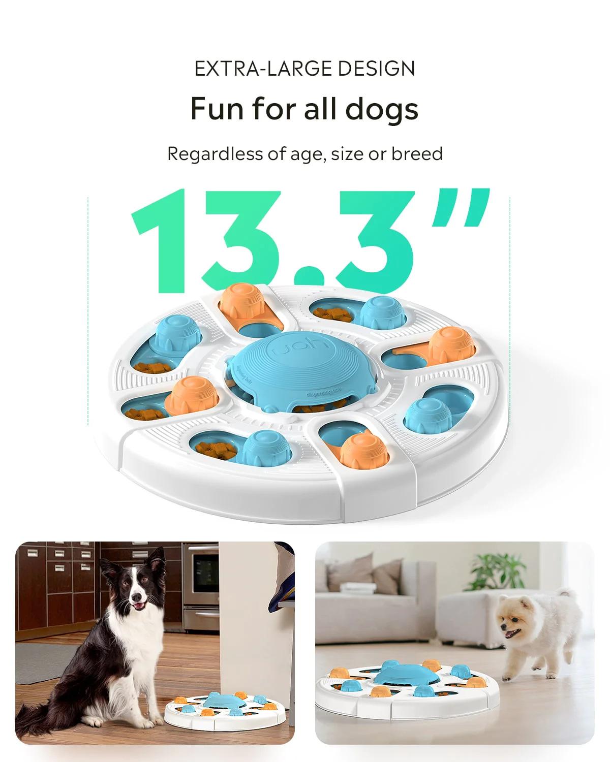 This dog puzzle toy combines a 16-hole dog food puzzle chassis with a chewable food dispenser to satisfy dog’s sniffing and chewing needs. The two can be played separately or combined to adjust the difficulty. There are four game modes for dogs to challenge. Non-toxic materials, BPA-free, safe and environmentally friendly, and will not harm your dog when biting or licking.