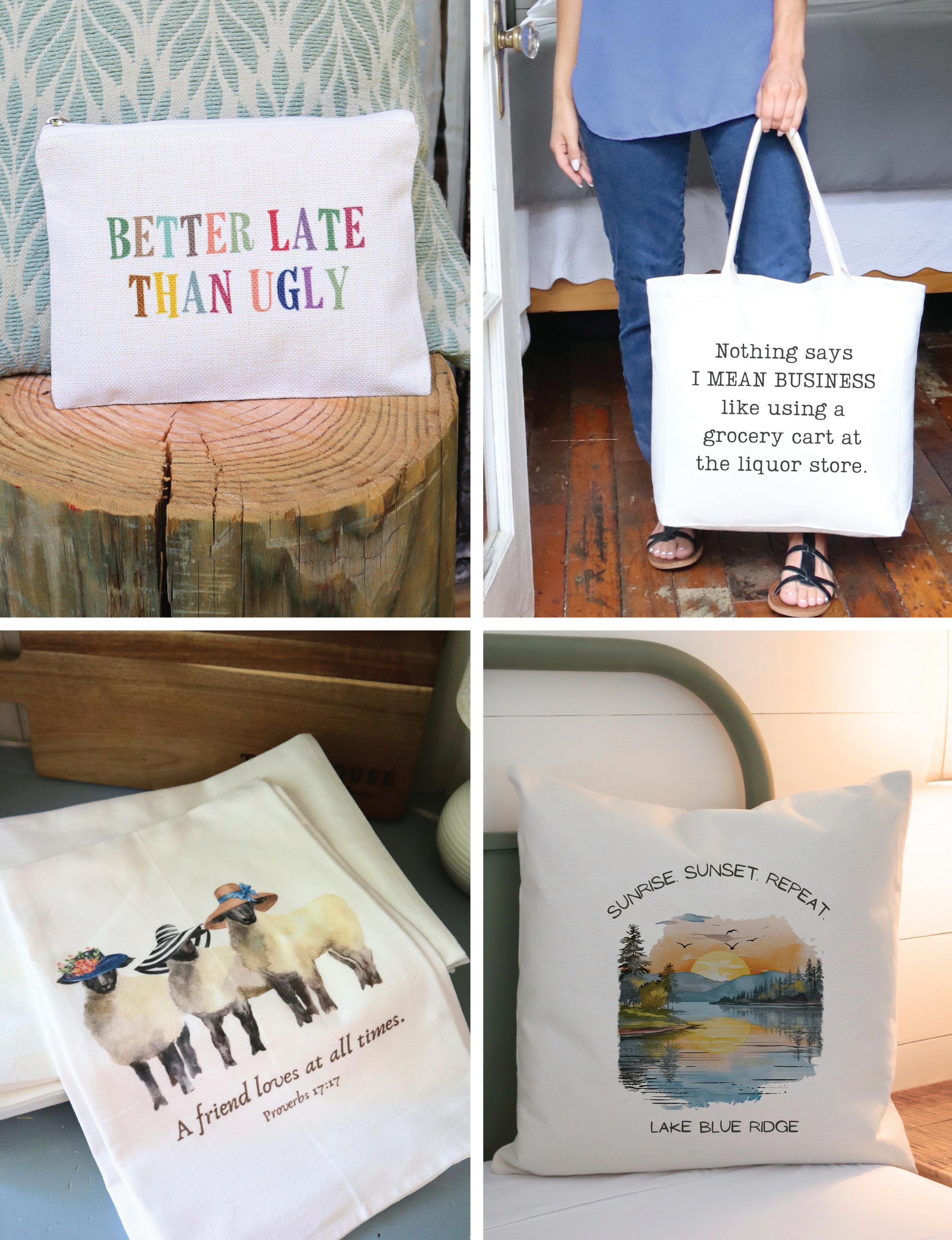 Jump in Lake Towel Square Pillow 23PWRJIL Tote Bag 23TBRJIL Accessory Bag 24ABRJIL 23FSTSOMM Sunshine on my Mind Towel Square Pillow 23PWSOMM Tote Bag 23TBSOMM Accessory Bag 24ABSOMM Lake