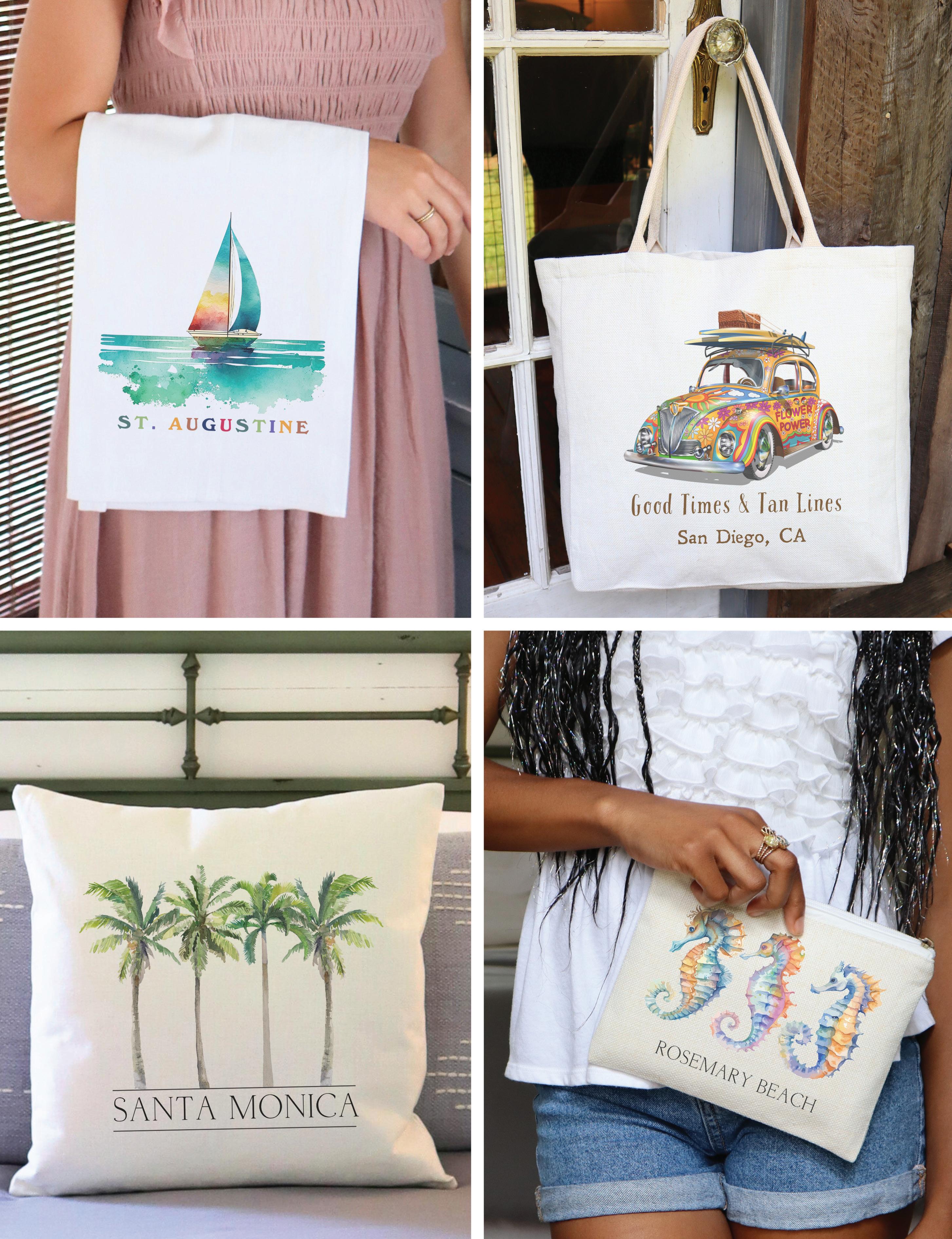 206 ADD A NAMEDROP TO ANY DESIGN - NO SET UP FEE - CUSTOM MINIMUMS APPLY (404)804-8450 Sales@CoraAndPate.Com CoraAndPateWholesale.Com 24FSTPTQ Palm Tree Quartet Towel Square Pillow 24PWPTQ Tote Bag 24TBPTQ Accessory Bag 24ABPTQ 24FSTS Surfboards Towel Square Pillow 24PWS Tote Bag 24TBS Accessory Bag 24ABS 24FSTSG Surfing Girl Towel Square Pillow 24PWSG Tote Bag 24TBSG Accessory Bag 24ABSG 24FSTCROB Crab on Beach Towel Square Pillow 24PWCROB Tote Bag 24TBCROB Accessory Bag 24ABCROB 24FSTBOTS Boat on the Sea Towel Square Pillow 24PWBOTS Tote Bag 24TBBOTS Accessory Bag 24ABBOTS 24FSTSAP Sunset and Palms Towel Square Pillow 24PWSAP Tote Bag 24TBSAP Accessory Bag 24ABSAP 24FSTGTS Good Times Towel Square Pillow 24PWGTS Tote Bag 24TBGTS Accessory Bag 24ABGTS 24FSTCS4 Coastal Scene 4 Towel Square Pillow 24PWCS4 Tote Bag 24TBCS4 Accessory Bag 24ABCS4 24FSTBSP Blue Sky and Palms Towel Square Pillow 24PWBSP Tote Bag 24TBBSP Accessory Bag 24ABBSP 24FSTCS1 Coastal