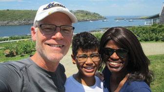 Adam Gussow (left) takes a selfie during a 2016 hike with his son, Shaun, and wife, Sherrie.