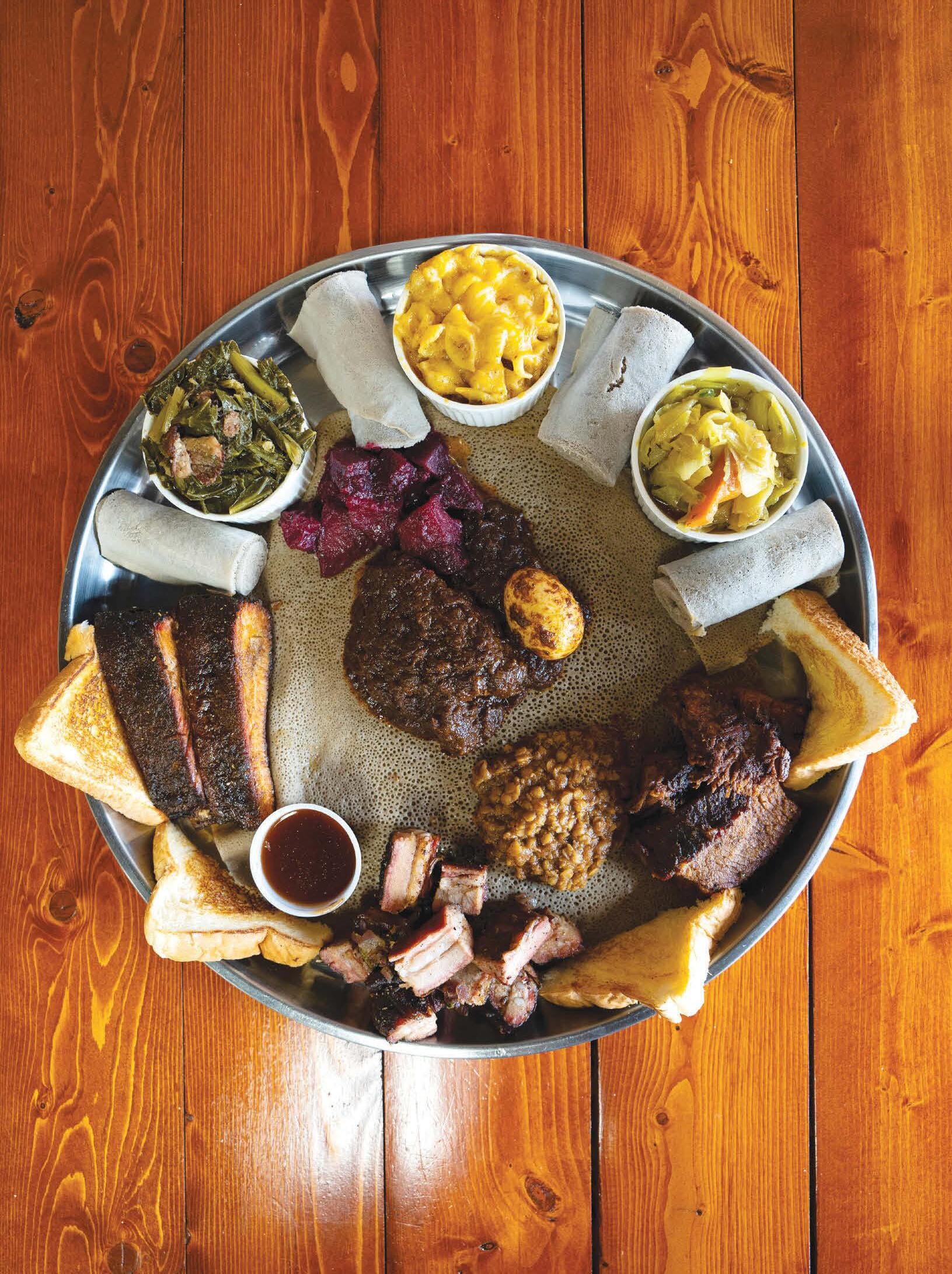 Both Hickses hope to hear that phrase again when they open their next Smoke’N Ash in Ethiopia. One of Fasicka’s sisters spent the early summer months in Arlington learning how to prepare their signature rubs and smoke meats to their specifications. When she returns to Ethiopia to launch the restaurant’s second location, she’ll serve smoked chicken, mac and cheese dusted with berbere, and shiro, the beloved chickpea stew, abob with cubes of slowcooked brisket and topped with clarified butter. And she’ll tell her patrons that that’s how they do it in Texas.