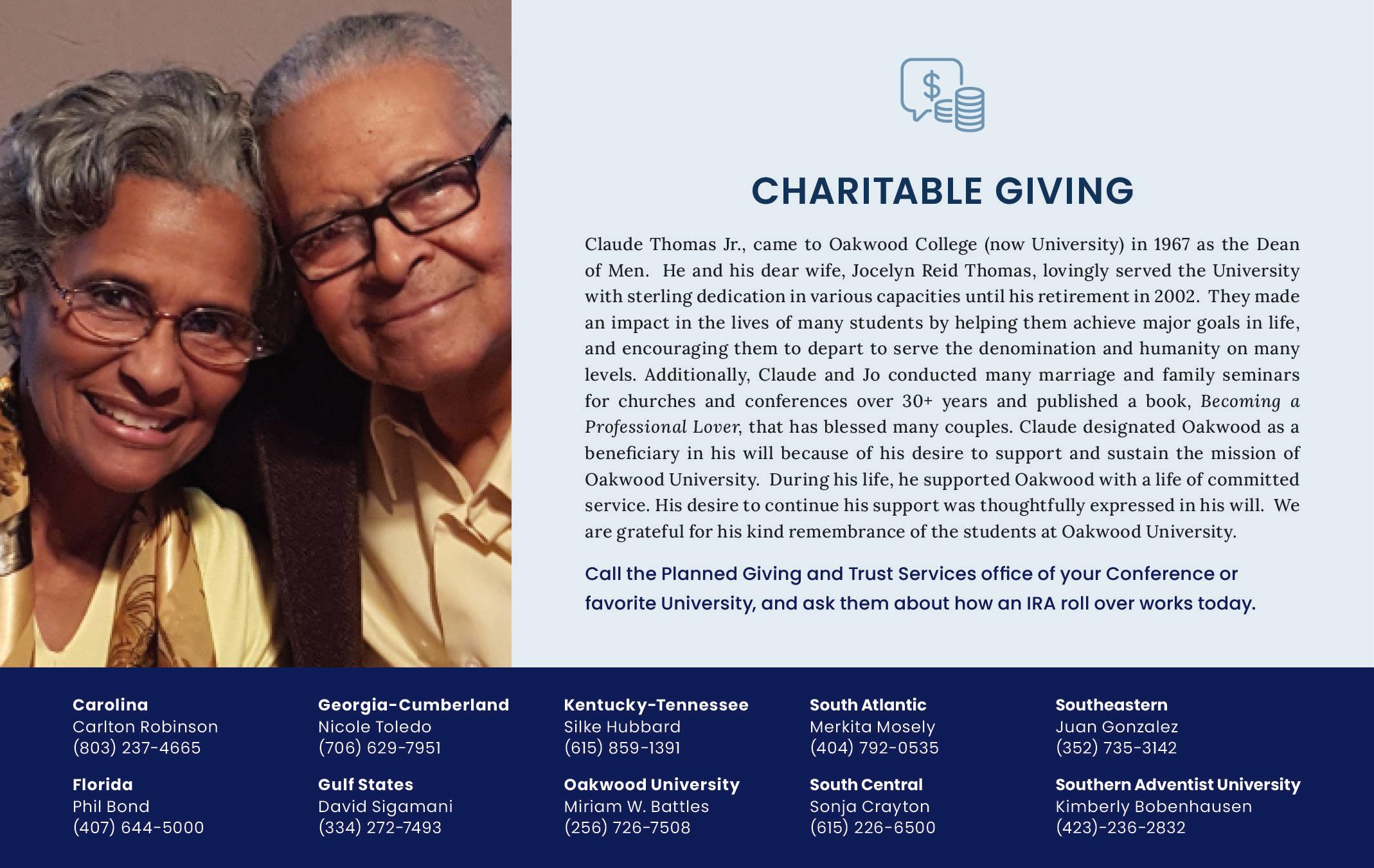 Essentials of Fundraising Workshops – Virtual – May 17, Donor Cultivation; August 30, Grant Writing; November 8, Integrating Fundraising & Grant Writing. Registration/ information: floridaconference.com/ fundraisingworkshop/ Fit Together Health Retreat – Sept. 11-13. Camp Kulaqua, High Springs, FL. Information/registration: floridaconference.com/fittogether/