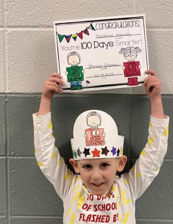 Kyler Springville Elementary Kaycin Peoples “mr smarty pants” made it 100 days!!! Whitaker