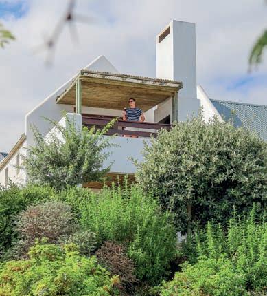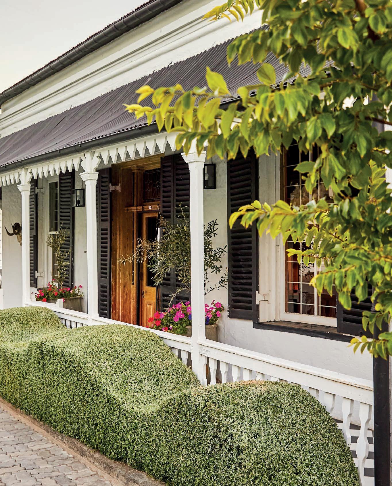 The front of the house sticks closely to its Karoo-Victorian roots. Jan reinstated the original fretwork, repaired broken balustrades and kept the silhouette as it was. But there are clues to what lies beyond: hedges clipped into soft curves, a nonworking windmill topped with a sunflower - a nod to the region’s farming identity and a touch of humour.