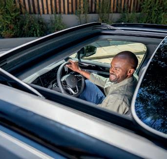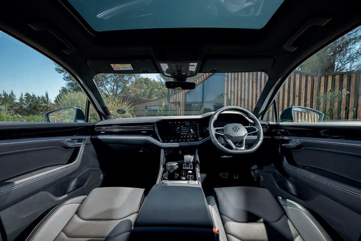Step into the cabin, and it is immediately clear the Touareg was designed for modern life. It’s high-tech, yes, but also warm and welcoming. The R-Line trim includes luxurious leather seats with full electric adjustment, and the ambient lighting system now o ers 30 colours across multiple zones, allowing you to tailor the ambience to suit your mood or the moment.