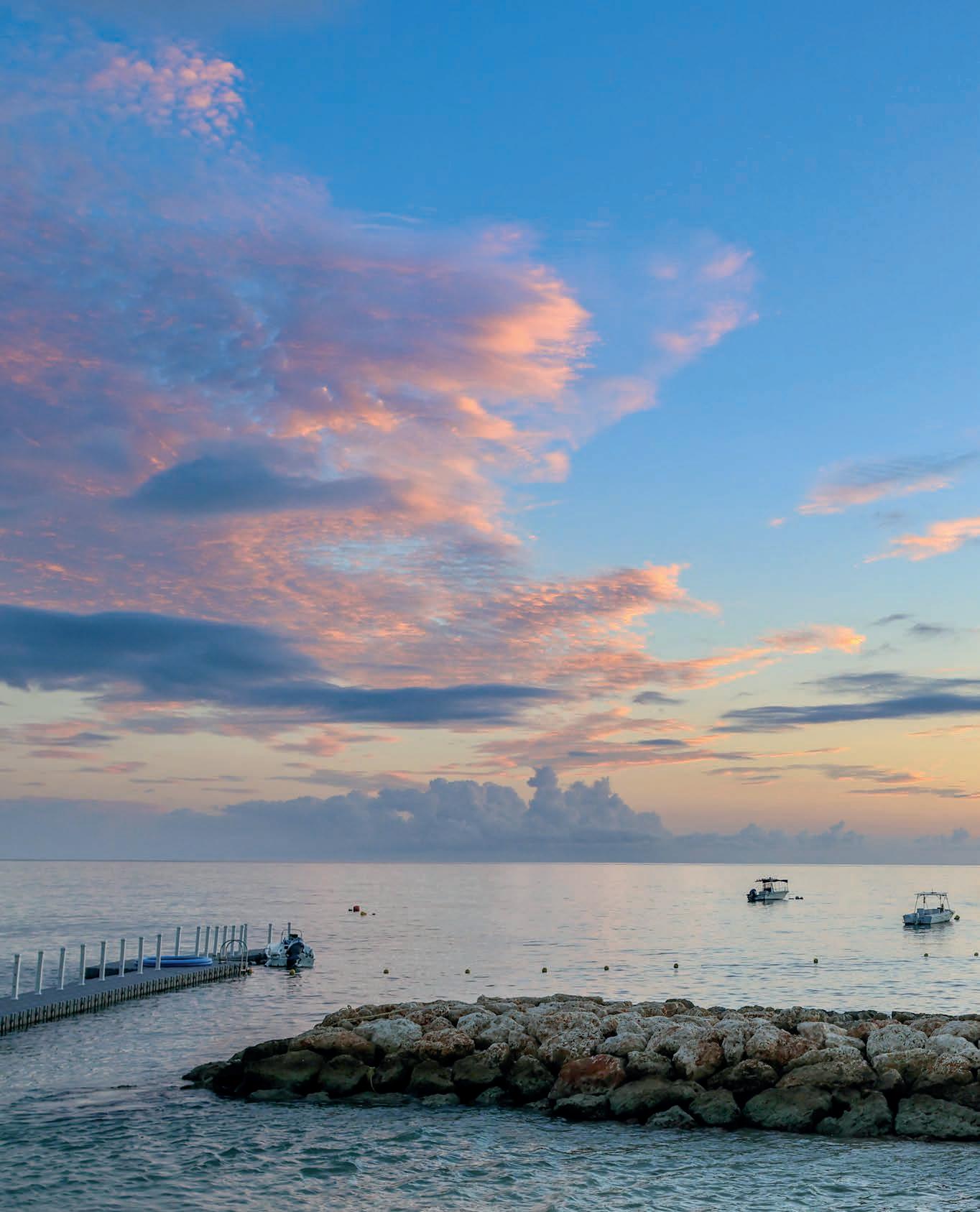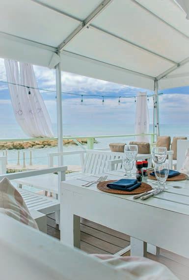 Metres away, the hotel’s oceanside restaurant and beach club present an oh-soperfect harbour setting. My jaw dropped, and I knew I had found my favourite enclave on the island. The Fish Pot is a dreamy eatery that we’ve adored; an intimate restaurant that floats above the sand, with gourmet fare and the best Rum Punch we had on the island. When we finished eating, it was just two steps to flop down onto the private loungers. Later, the little harbour o ers sheltered swimming, or a walk on the jetty allows you to jump onto the floating ‘sea chills’ or swim to the pontoon. littlegoodharbourbarbados.com