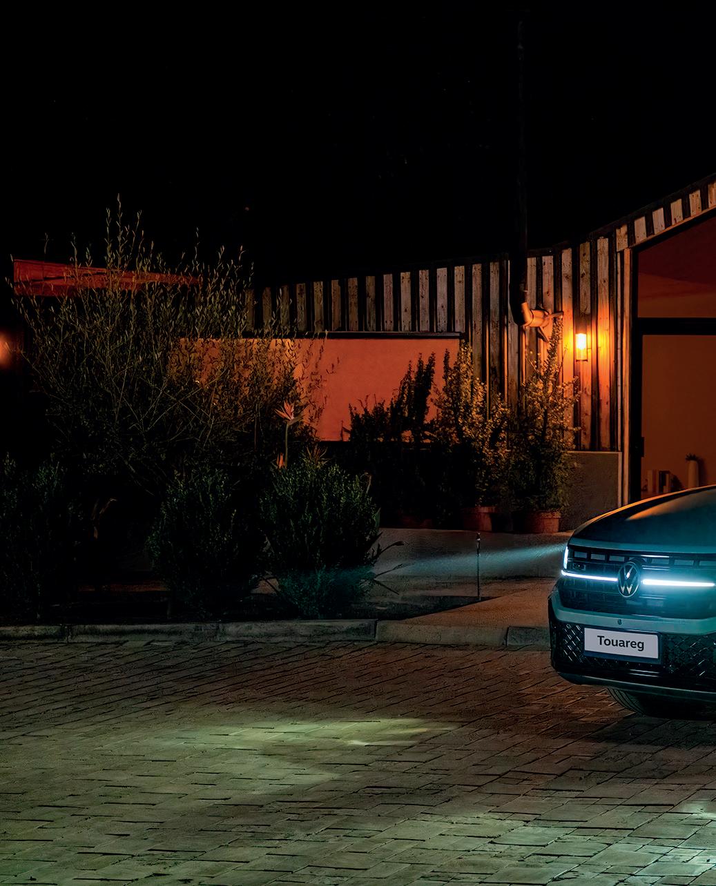 The Touareg’s recent facelift doesn’t scream for attention; it commands it. Sharper lines, a wider grille and new IQ.Light HD matrix headlights give the front end more presence without overdoing it. Around the back, its sleek LED strip connects the taillamps and highlights the newly illuminated VW badge, subtly signalling this is something premium. It is the sort of design that works just as well pulling up to a boutique lodge in the Cape Winelands as it does gliding through Johannesburg tra c.