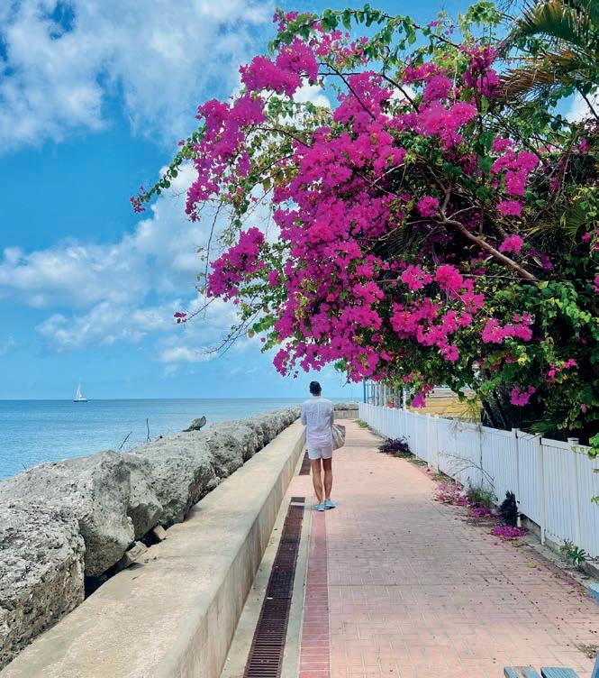Being my first visit to the Caribbean, the first stop was the beach. ‘Platinum Coast’ fulfils every dream you have conjured up of Barbados from films and glossy magazines; sunseekers demurely saunter from lounger to ocean, exuding e ortless barefoot chic. Beach club sta ensured a steady flow of Rum Punches from the bar, while foxtail palms rustled in the gentle sea breeze overhead. With tourism as the focus, accommodation is abundant. Few resorts, however, can claim to have hosted guests since 1887. The Crane Barbados sprawls across the cli tops, and in true resort style, restaurants and bars are dotted throughout the large property. With supremely spacious rooms and six pools spread over the property, it was the perfect starting point for us and the many families enjoying the resort life. Sand seekers could take an elevator down the cli to the private beach, where waves flowed as steadily as the drinks at the adjacent bar.