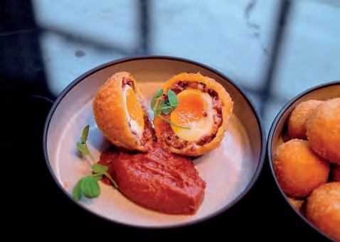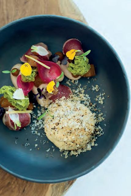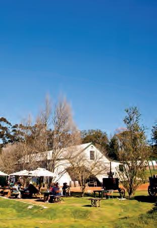 For a small town, Darling is home to a fair number of restaurants. A personal favourite of mine is The Marmalade Cat, a sweet space best suited to co ee and carrot cake or a tasty breakfast of pancakes with scrambled eggs and cream cheese, enjoyed in the quirky courtyard. Another cosy option is Chicory Cheese Cafe. Located on the main road, it’s a charming space that serves casual breakfasts and lunches, and the menu includes some surprising sweet treats, like chocolate and beetroot cake, fudgy peanut smoothies and Mexican chocolate wa es with ice cream, fresh strawberries and a dash of cinnamon.