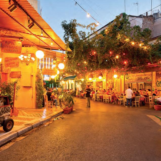 If you’re on the lookout for an authentic, but elegant Greek dining experience, Athens is a good place to start. The city has numerous upmarket options, many of which o er traditional cuisine with a modern twist. Varoulko Seaside at the Mikrolimano marina is headed by Michelin-awarded chef Lefteris Lazarou, and serves fresh seafood prepared in the