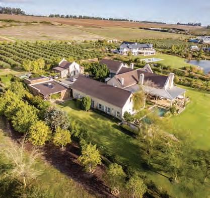 A secluded country lane traverses established vineyards to arrive at the commanding entrance gates of this impressive residential vineyard estate. Tucked away in a private location overlooking stunning gardens and with breath-taking vistas, this is an exceptional retreat surrounded by native oaks, gently sloping hills, and vineyard rows. The property boasts a privileged position in the much sought after Devon Valley surrounded by a hillside of olive groves and vineyards and breath-taking views across the Boland mountains.