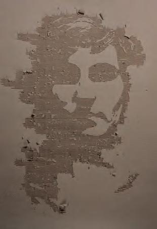 Aside from the fact that she intricately transforms a banal sheet of paper into a magical man-made structure in a bid to explore existence, Karla shapes her subjects in what is considered one of today’s most consumable, recyclable and fragile commodities. Her chosen imagery, whether it be a portrait created from corrugated card, or a paper-cut industrial building, is a quest to capture the ephemeral moments of existence. SV