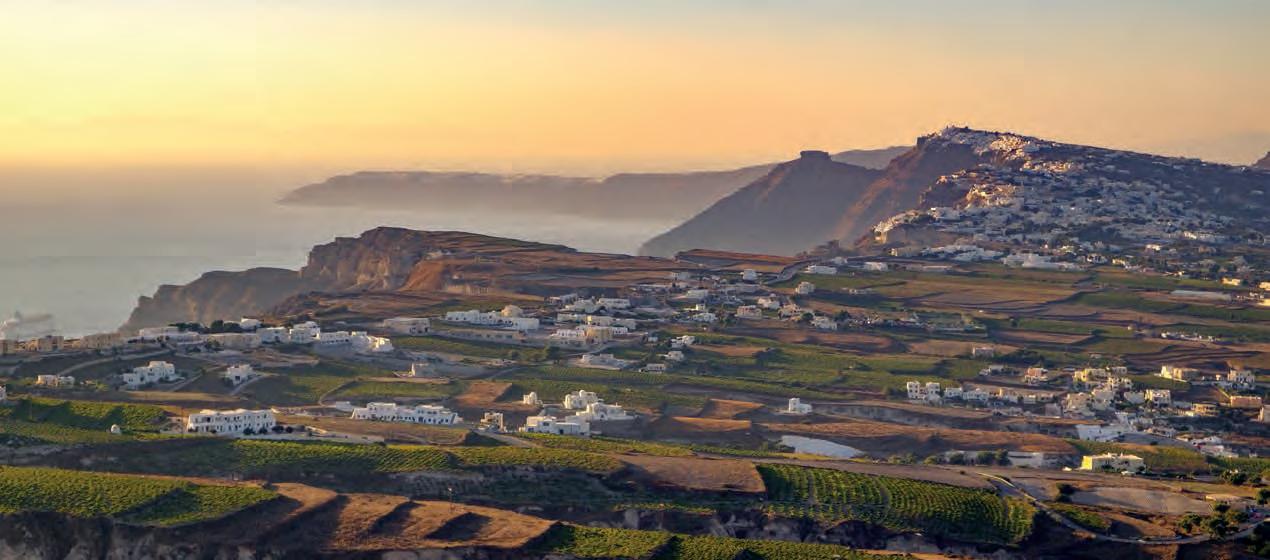 Loved for its white-washed buildings, spectacular sunsets, and volcanic-sand beaches, Santorini is also home to vineyards and traditional villages, making