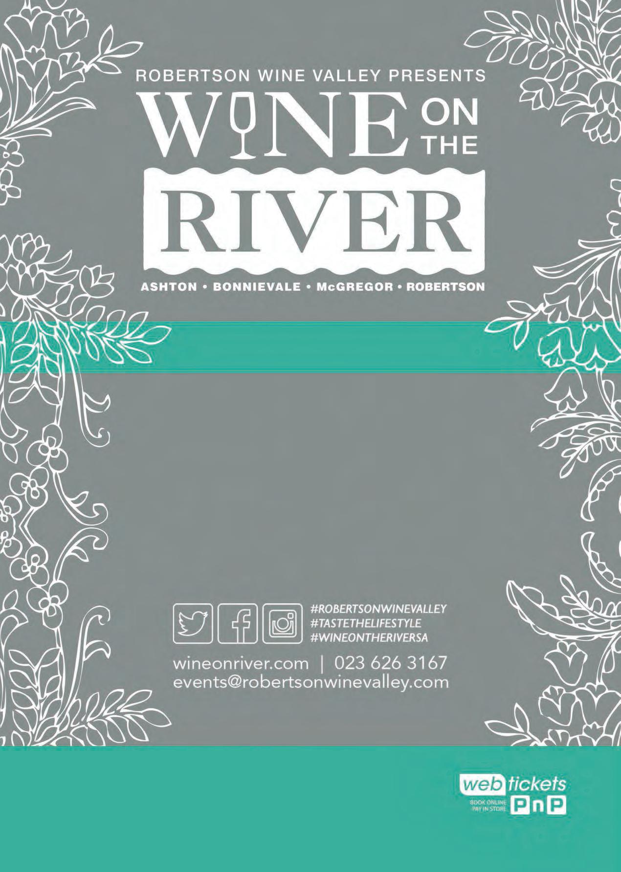 Celebrate Robertson Wine Valley on the banks of the Breede River at the 12th annual Wine on the River festival. The banks of the Breede River on Goudmyn Farm will come alive with the valley’s esteemed winemakers, local chefs, and producers. This picturesque centralized festival gives consumers the opportunity to taste award-winning wines from almost 30 wineries. Unwind, relax and enjoy fresh country air, beautiful scenery and warm spring sunshine with an array of delightful treats, local country cuisines, and great music.