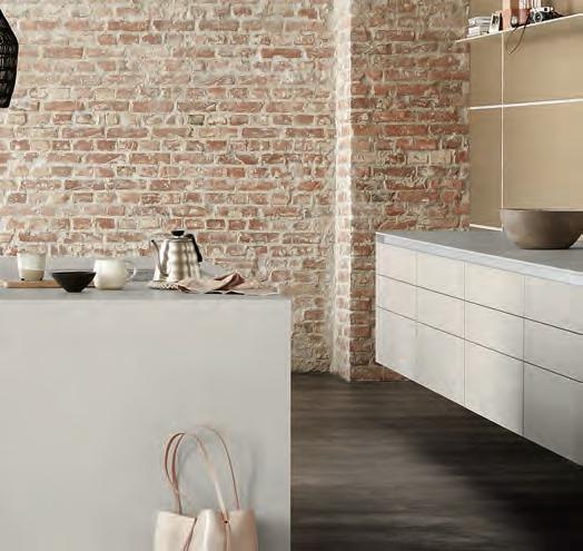 Sleek sandy-beige aluminum panels from floor to ceiling on the kitchen wall contrasts with the texture of the brick in the dining and living area. The look and feel of the aluminum changes with the light, and introduces additional elegance and warmth to the room. Moreover, bulthaup’s unique anodizing method ensures the aluminum surfaces are exceptionally robust, and well suited for kitchen use.