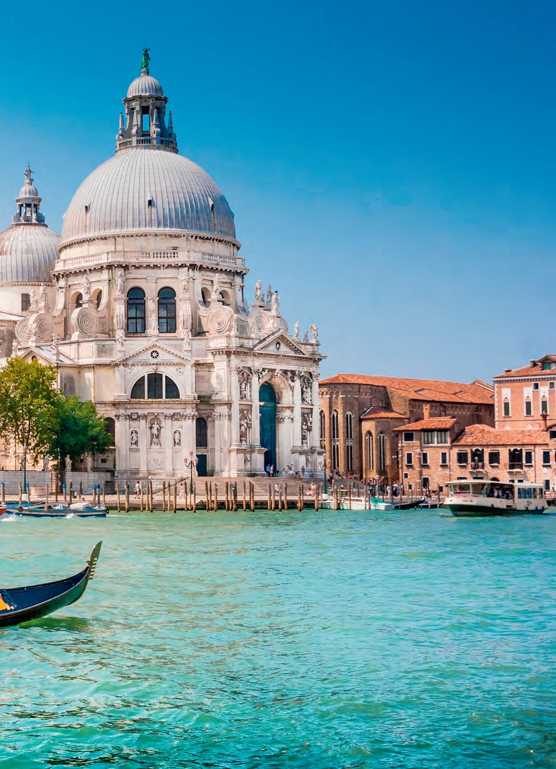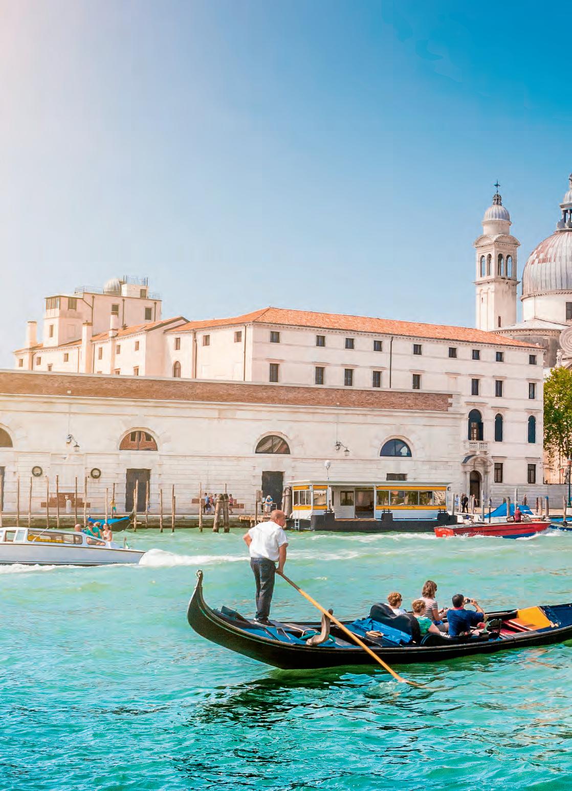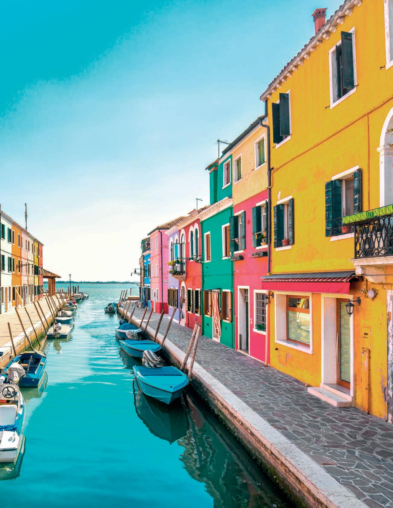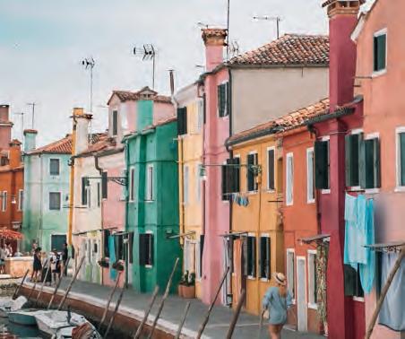 Most boating trips on the Venetian Lagoon begin in Casale, a pretty town characterised by Gothicstyle architecture — stock up on freshly baked bread and pastries here before setting o on your journey. From there, the river winds its way towards Padua, one of the country’s oldest cities and a great spot to see some of Italy’s best-preserved historical