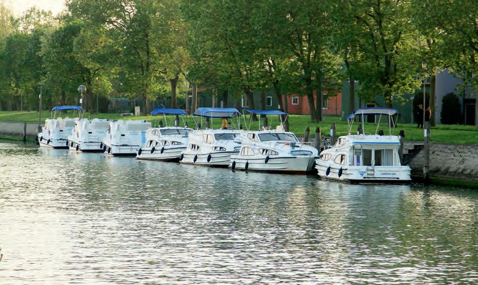 It’s possible to hire canal boats from Le Boat, who o er a range of options. One of them is the Magnifique, and at 14.5 metres, it’s a great choice for a group of up to ten. The boat boasts a spacious sundeck with cushioned seats, a full-width swim platform and shade umbrellas, while the interior is beautifully appointed with wooden flooring and finishes. Each of the cabins is cleverly