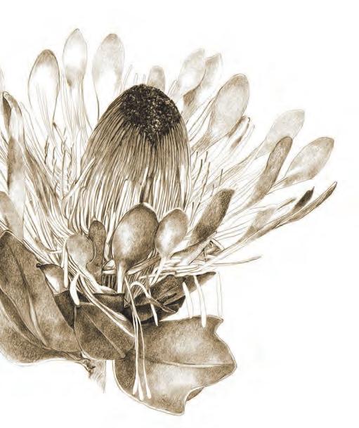 Helen’s work has been exhibited at a number of spaces, including The Bay Hotel, the Cape Gallery and Red the Gallery, as well as multiple times at Kirstenbosch, and she has also been featured in a number of magazine publications. She has won numerous awards for her work and was also awarded the Fellowship of the South African Society of Artists.