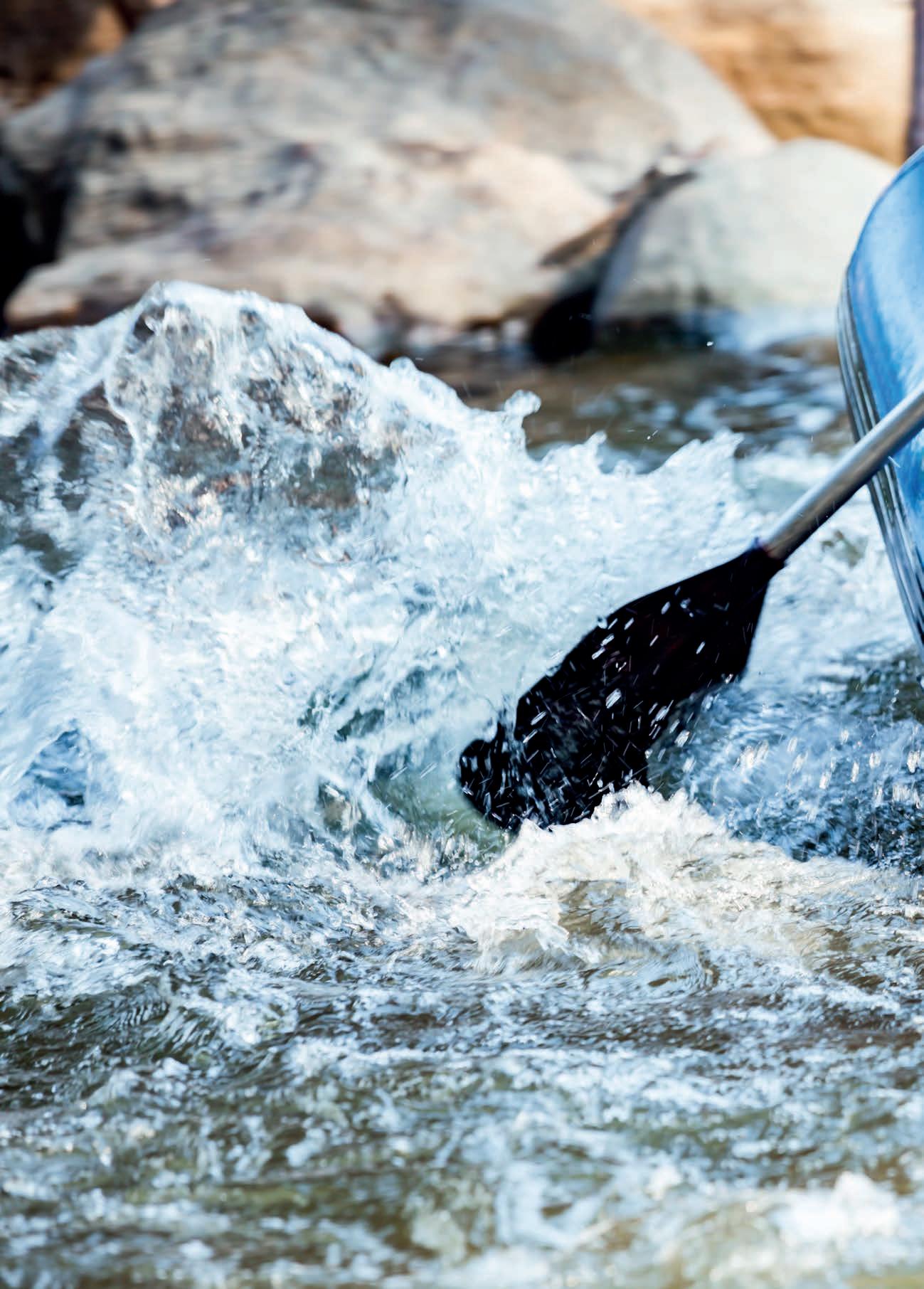 in the remainder of the country. “White water” is used to describe the tumultuous tumbling of water down an incline, over rocks, or through a narrow channel, which whips the river into a frenzy of white froth. These stretches of river flow super fast and require a little dexterity to negotiate, but that’s what makes it fun!