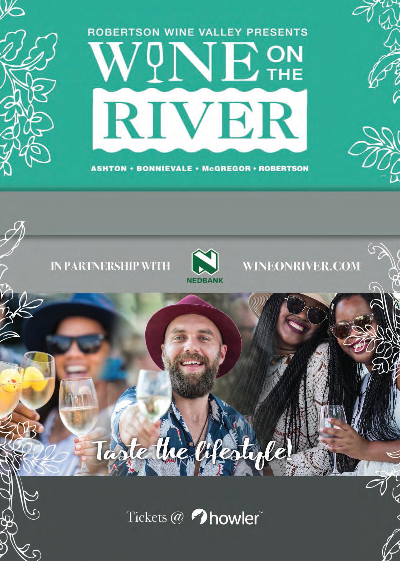 The annual Wine on the River festival in partnership with Nedbank transforms the banks of the Breede River on Goudmyn Farm into a food and wine haven with wine tastings by over 25 wineries, mouthwatering country cuisine, boat cruises, live music, dedicated kids area, and more.