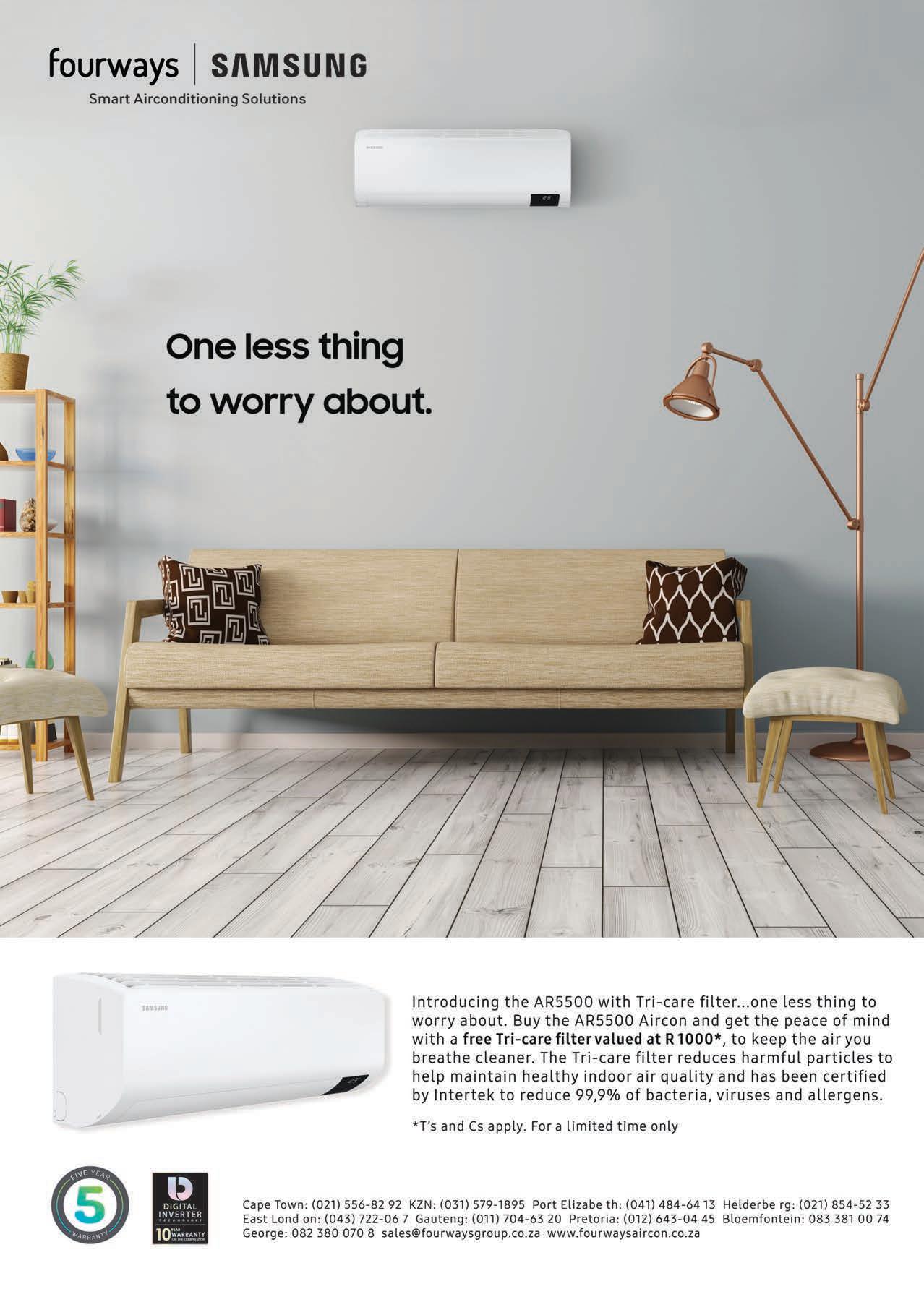 While international travel plans may be on hold for the moment, there’s no reason we shouldn’t make the most of our time spent at home. In this issue, we look at fun ways to update our spaces with the latest décor trends. We also discover some beautiful local destinations and look at the most exciting South African-based companies and the products they o er. While many of our local businesses may be su ering at the moment, there are initiatives in place that seek to uplift our communities — in this issue we look at the Restaurant Rescue Project, an independent e ort to preserve Cape Town’s gastronomic culture.