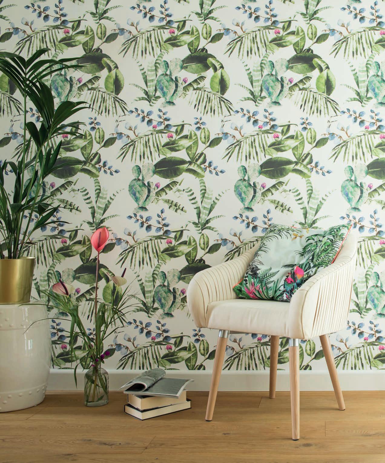 stricken world, Lou Harvey isn’t resting on her laurels. Most recently, she has added a range of wallpapers to her o ering, which incorporates 12 di erent designs featuring a blend of bold botanicals, floras, natural elements, and geometry.